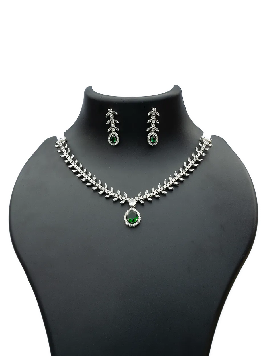 This exquisite necklace set is designed to make a truly unforgettable statement. The entire necklace is crafted as a continuous, flowing vine, formed by a dense array of meticulously placed leaf-cut American Diamonds (AD) that sparkle with every movement.