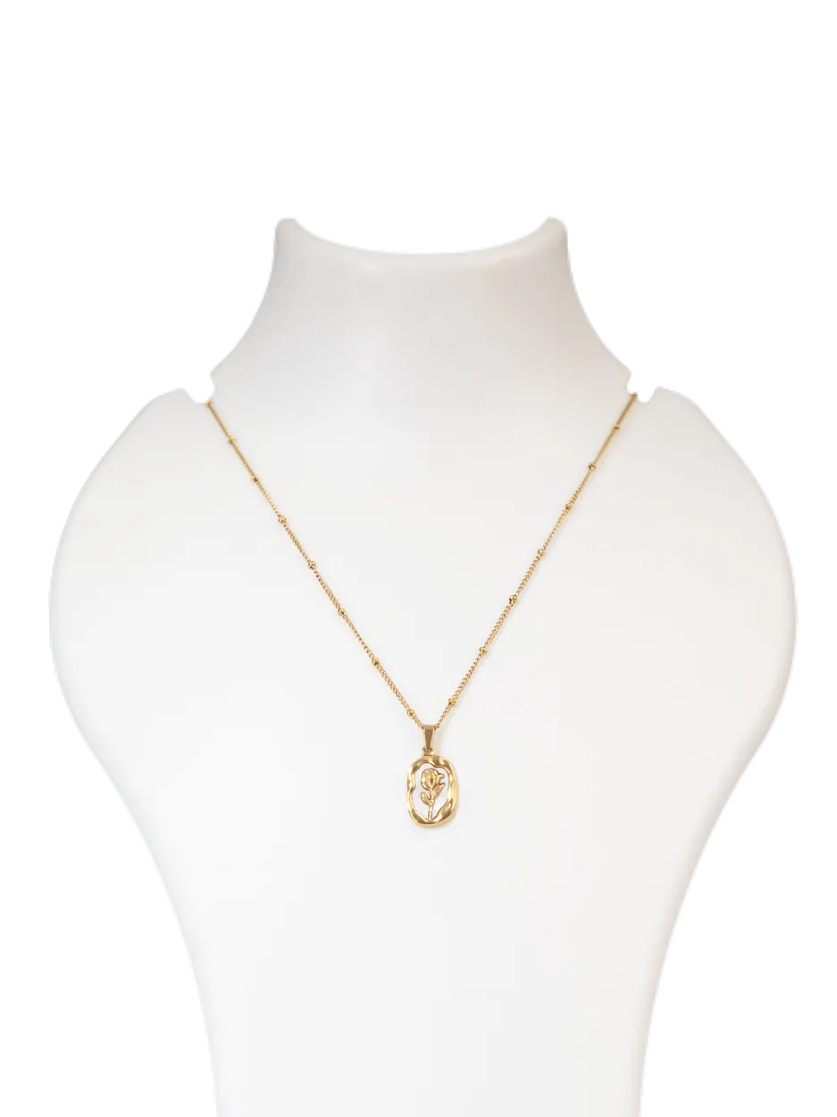 The Rose Medallion Necklace is a celebration of romance and artistry. Featuring a finely engraved rose motif on a softly contoured gold medallion, this piece exudes vintage-inspired charm with a contemporary finish.